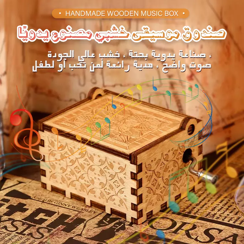 صندوق موسيقى خشبي مصنوع يدويًا